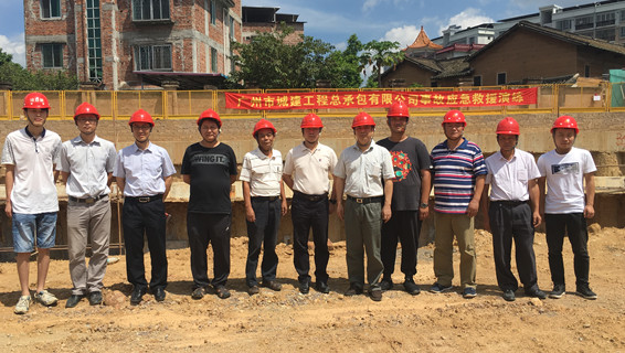 2017年8月14日,總包公司赴梅州嘉應(yīng)學(xué)院醫(yī)學(xué)院附屬醫(yī)院住院大樓項目現(xiàn)場進(jìn)行了應(yīng)急救援演練,參演人員有公司領(lǐng)導(dǎo)曾國勝副總經(jīng)理、李偉君副總經(jīng)理、總工室成員及項目現(xiàn)場人員。