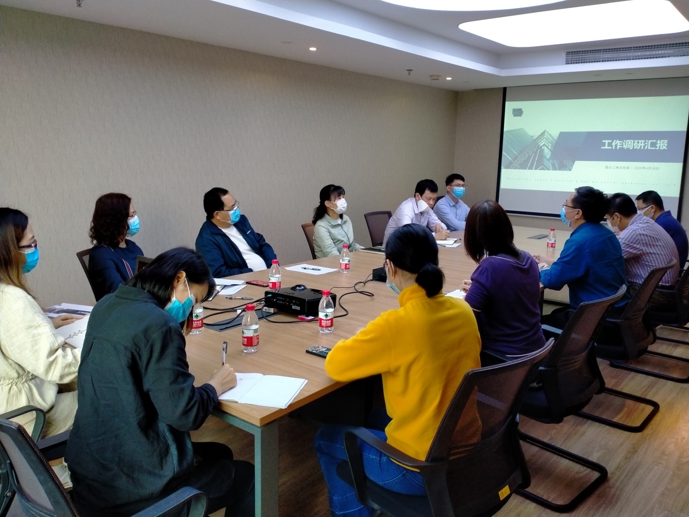 2020年4月16日,規(guī)劃院黨委書記陳蓉帶隊到公司開展疫情防控和復(fù)工復(fù)產(chǎn)工作調(diào)研,規(guī)劃院黨委委員黎樹禧及項目部相關(guān)人員參加會議。