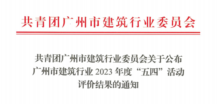 近日,廣州市建筑行業(yè)委員會舉辦廣州市建筑行業(yè)2023年度“五四”評選活動,對企業(yè)團(tuán)組織、團(tuán)員、團(tuán)干部等日常團(tuán)務(wù)管理工作進(jìn)行考察評定。公司積極申報(bào),經(jīng)評審委員會綜合評定和公示,成功評為“廣州市建筑行業(yè)五四紅旗團(tuán)(總...